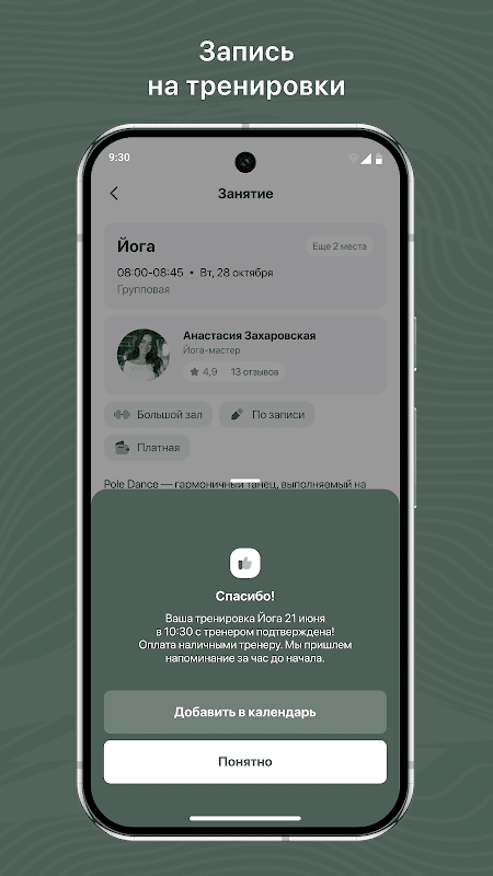 - Скорректированы статусы в "Моих записях" после регистрации на групповое или персональное занятие.