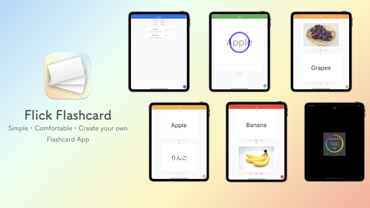 Flick Flashcard supporta testo, immagini e voce.