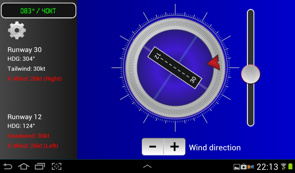 Venti di volo aiuta i piloti calcolano componenti vento al traverso, vento in coda e il vento contrario per il decollo e l'atterraggio.