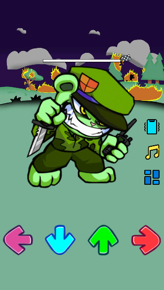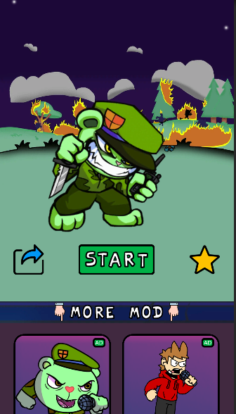 Friday Funny Mod Flippy Mad FNF è il sequel del popolare gioco in cui devi giocare nei panni del malvagio Flippy. È un piccolo orso verde con gli occhi gialli e un'espressione molto arrabbiata, che indossa un'uniforme militare verde. Flippy appare raramente nel gioco, ma ogni volta influisce notevolmente sugli altri eroi.