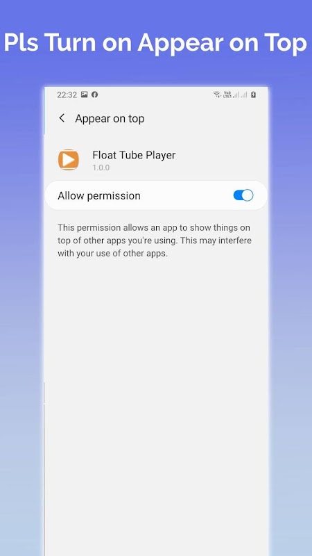 - Appear on top other apps: This permission allows Float Video Player to show the pop-up player on top of other apps you're using.