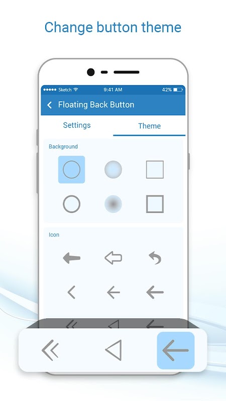 - Attiva / disattiva l'accesso per accedere all'app Floating Back Button.