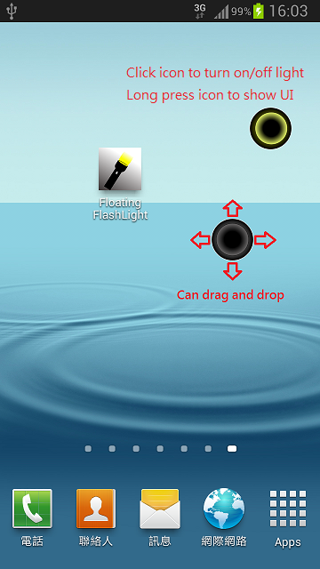 Can create a floating icon which can be clicked to turn on/off flashlight even UI was closed.