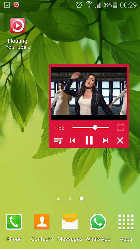 Ascolta la musica o guarda i video con l'app Floating YouTube Music Player.