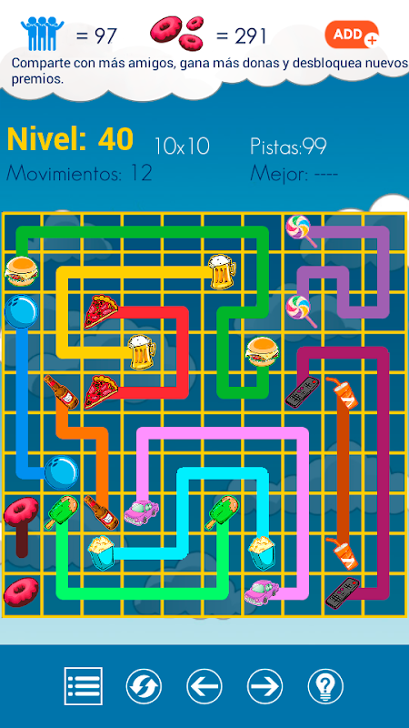 Desliza tu dedo y une los llamativos objetos a través de los colores. ¡Ojo! No olvides completar todos los casilleros de la grilla. Puedes pedir toda la ayuda que necesites y así seguirás superando los niveles.