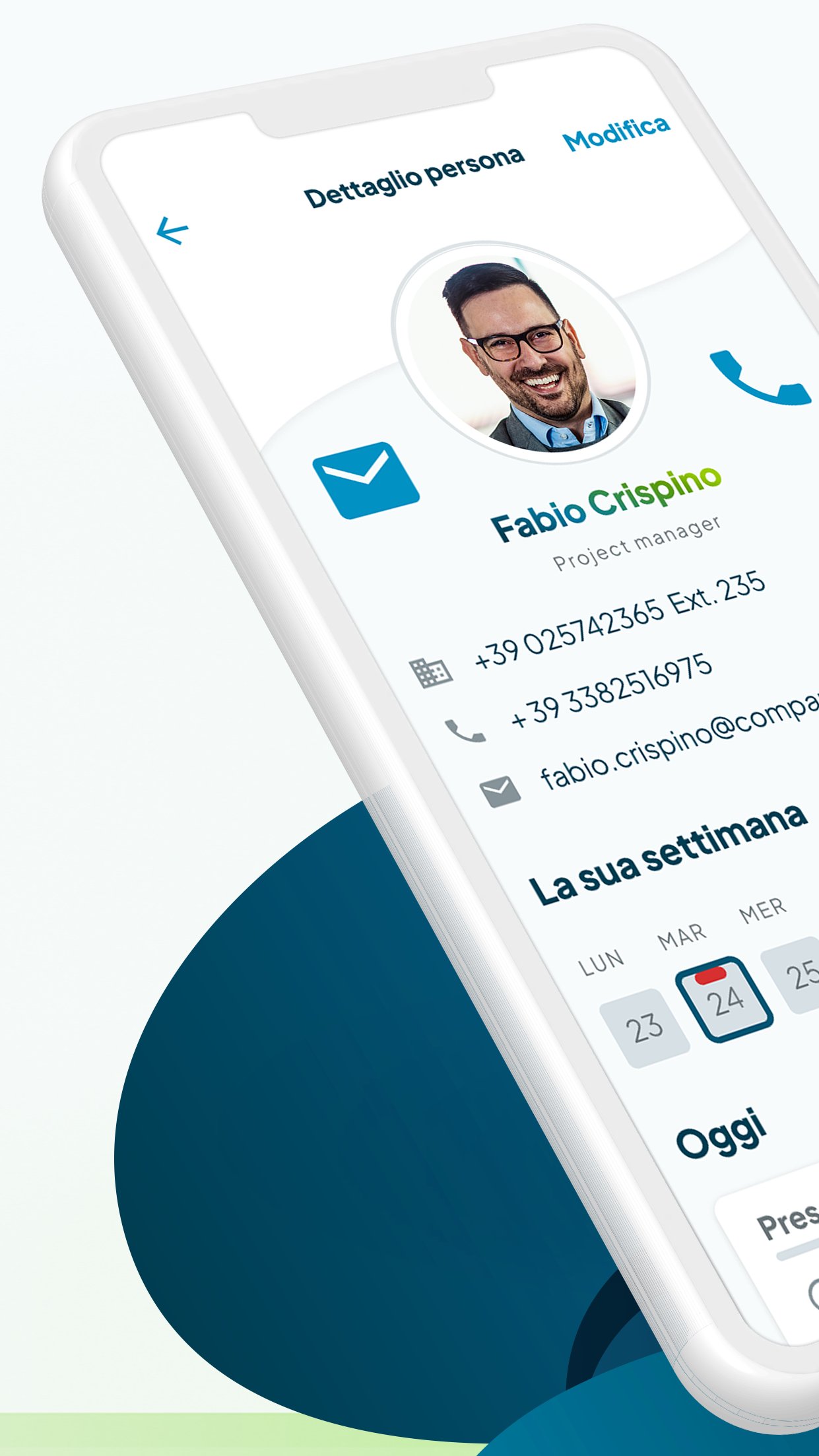 - consultare una rubrica sempre aggiornata con i contatti aziendali dei tuoi colleghi.