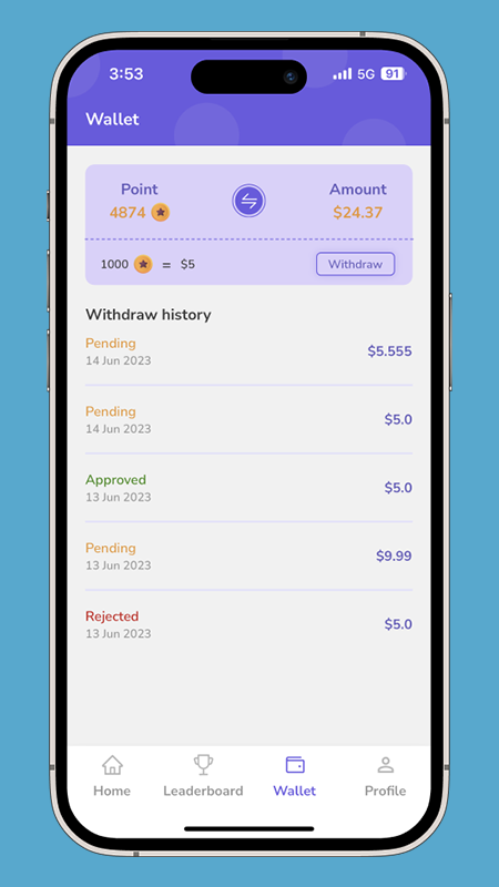 Gioca a quiz e guadagna monete. Puoi convertire le tue monete in contanti.