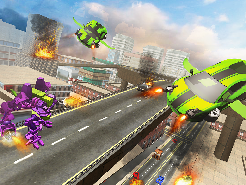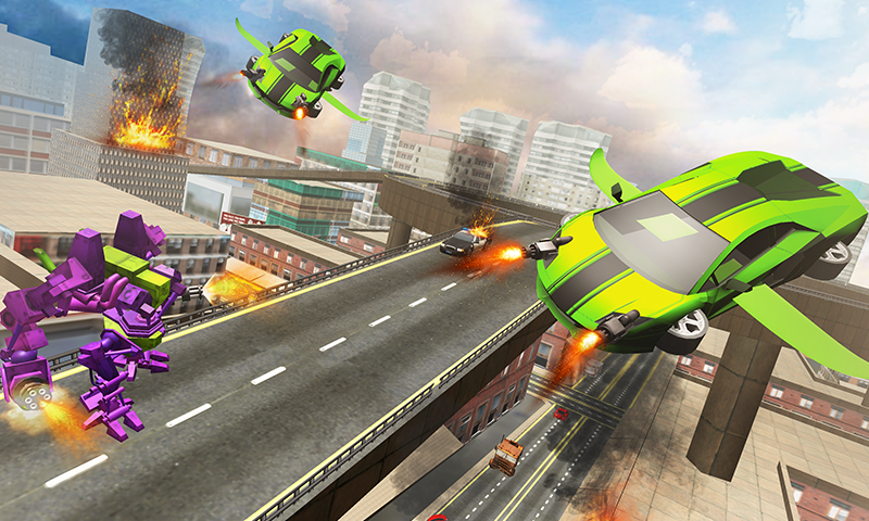 The futuristic city got attacked by flying car and mech robot. Super robot who is the real warrior will rescue the city from flying robot enemies in this robot transformation game 2018. The incredible robot transformation of super robot into flying robot car will take this robot transforming game into whole new level. The real futuristic robots war is on its way which is going to happen in the futuristic city. As a real robot warrior fight against the land enemies that are creating destruction around and transform your super robot in to flying air hero i.e a flying robot car to destroy air enemies in the brand new transforming robot game.