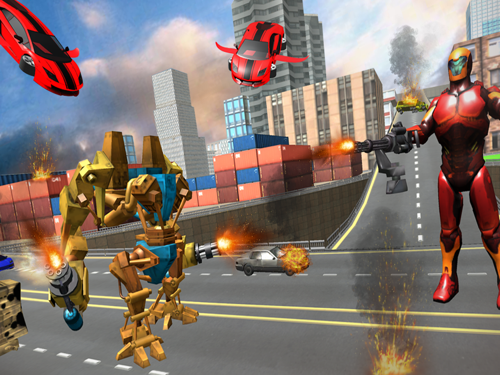 Along with fighting futuristic robot enemies super robot warrior will indulge in rescue mission for city survival. Get your flying robot car fully controlled and fly across futuristic city fighting the criminals using modern weapon and rescue city people. The rule is simple, fight and win urban robots war using the ultimate power of flying robot car. As a virtual robot hero this is your last chance. Will you be able to chase and destroy robot enemies in air and on land inside futuristic city?