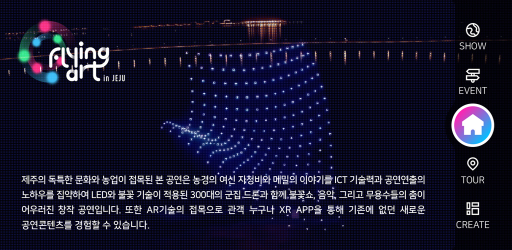 [Art volante] 는 새로운 멀티미디어 형 융 복합 xr 드론 아트 공연 으로 밤 을 을 빛 으로 아름답게 수 놓을 야간 문화 공연 브랜드 입니다.