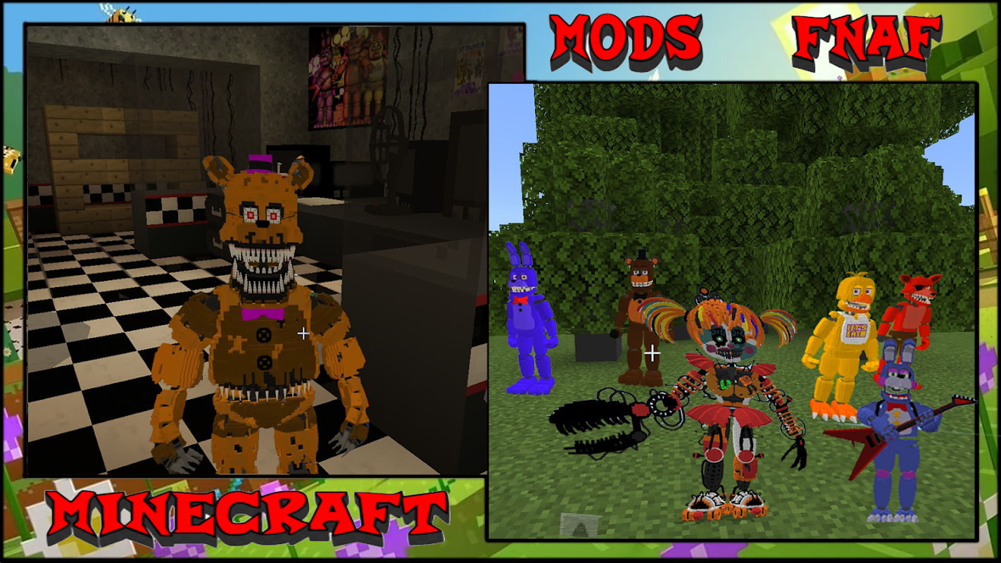 ora trasferito nel mondo pixel Minecraft di Five Nights at Freddy's (FNAF). La possibilità di affrontare i tuoi personaggi preferiti in emozionanti mappe FNAF Animatronic Mods.