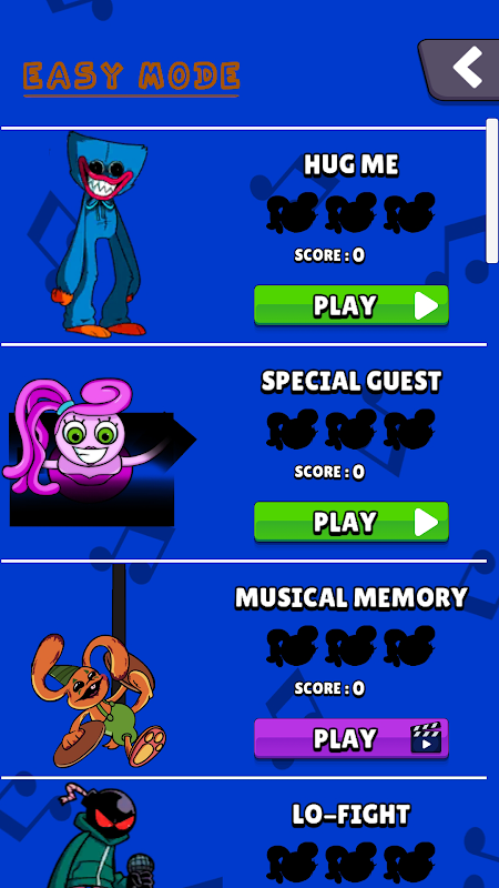 Questo gioco funziona perfettamente offline, puoi giocarci usando quattro pulsanti per creare il tuo successo unico alla musica e incontrare alcuni ragazzi difficili come Wuggy, Mommy, Tabi e Whitty.