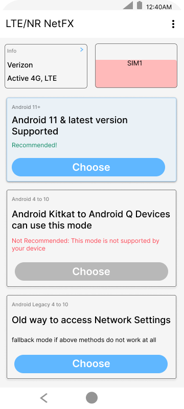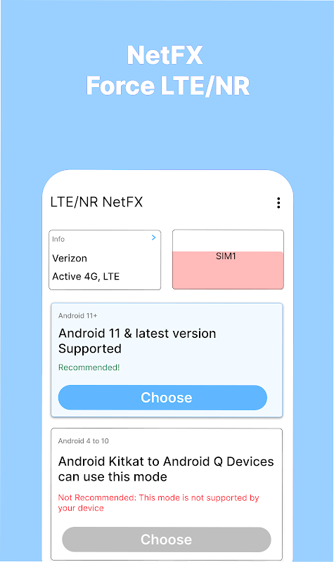 con l'aiuto di LTE/NR - NetFX puoi modificare la modalità di rete predefinita del tuo dispositivo e visualizzare anche le informazioni sulla simcard