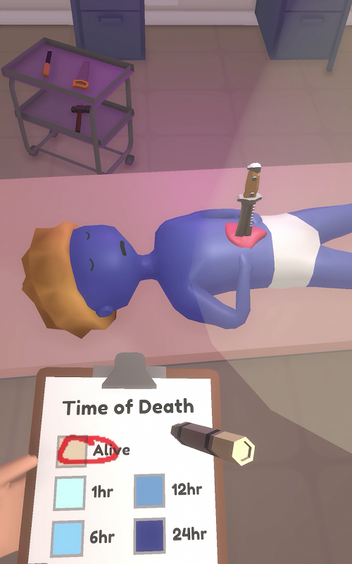 Major case alert! The body has just arrived, quickly check and report the details before it's too late! Be careful, you need have an eye for details. Gender? Dead or Alive? Stabbed or Strangled? Investigate it all!