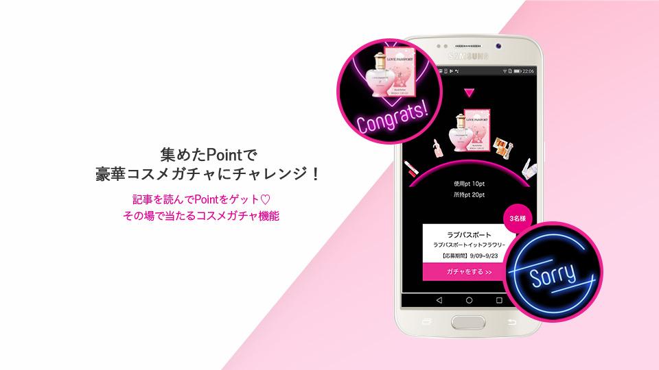 アプリ内にある懸賞・キャンペーン(コスメガチャ)は株式会社ロックオン主催のキャンペーンになります。