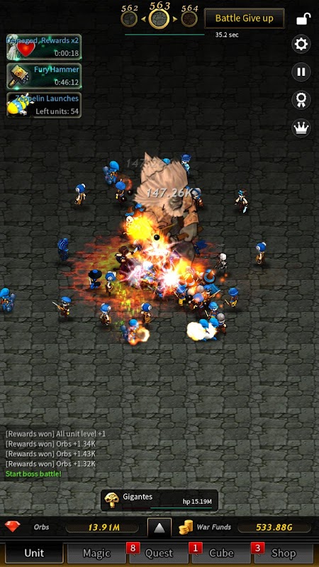 2. You can get War Funds and Orbs when you beat monsters. With this rewards, you may upgrade your Tap Hammer and units, or you may get new units.