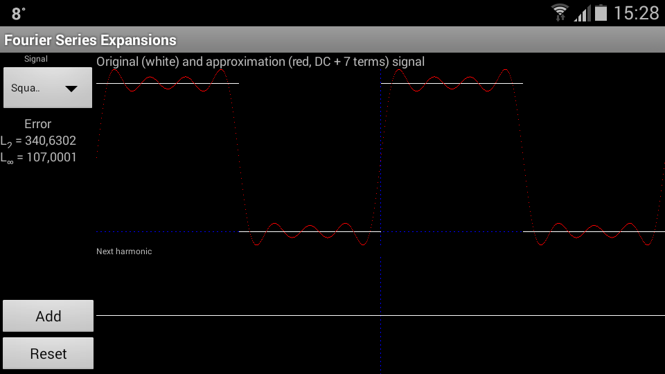 This app enables users to see the effects of Fourier Series over a set of typical signals.