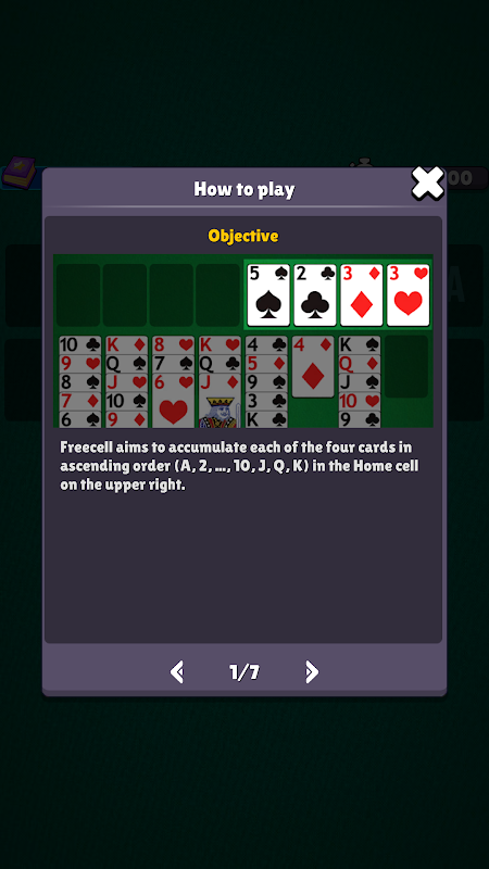 L'obiettivo del gioco è di impilare 52 carte in ordine di A, 2, ..., 9,10, J, Q, K per completare 4 set di carte.
