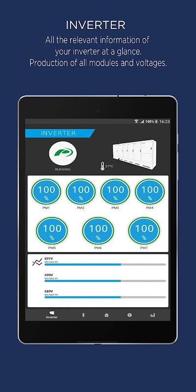 Any Android device will be easily wirelessly connected to the inverter creating a comprehensive and user friendly interface. Forget about using built-in displays with tiny screens and tedious menus, and allow your field technicians to service outdoor units under rain, snow or heavy sunny conditions, without opening or standing in front of the unit.
