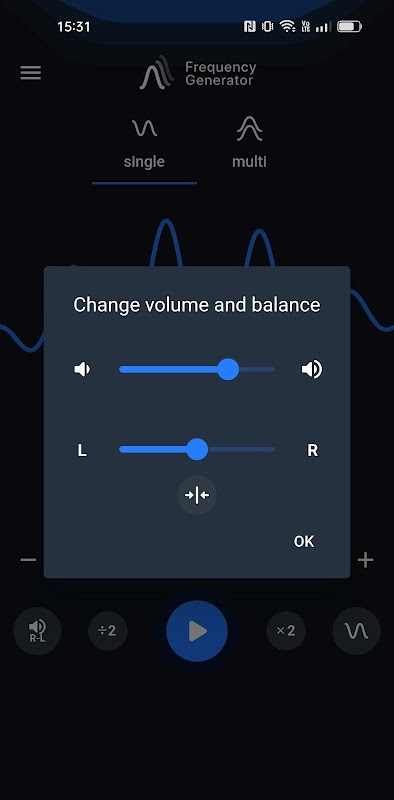 In questa modalità puoi generare in una volta tre suoni. Imposta diverse frequenze, onde e volume.
