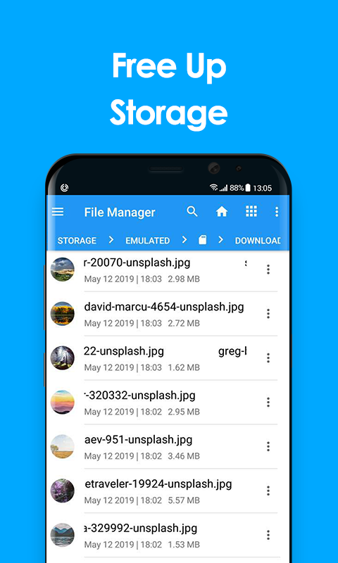 It supports every file management actions (open, search, navigate directory, copy and paste, cut, delete, rename, compress, decompress, transfer, download, bookmark, and organize). File Manager supports media files and major file formats including apk.