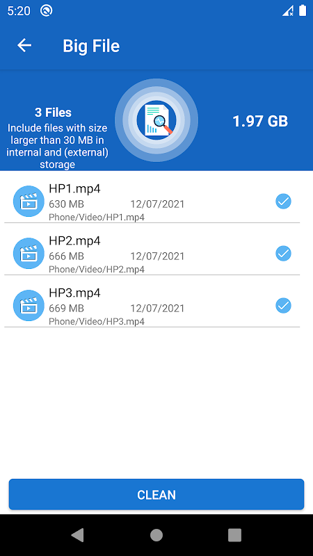 Cleaner: libera spazio di archiviazione sul dispositivo eliminando la cache e i file indesiderati.