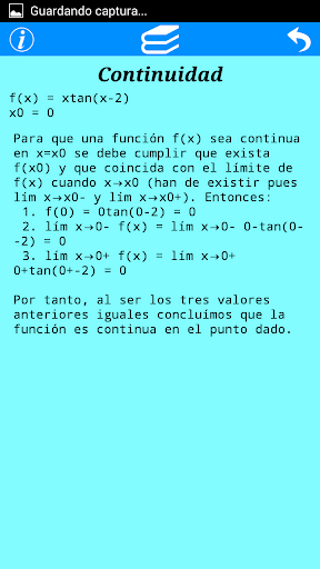 Questa applicazione di Editorial Editex S.A. Rappresenta qualsiasi funzione introdotta dalla tastiera, dandoci informazioni sulla sua continuità, estremi e intervalli di crescita, tra le altre cose. Include le seguenti sezioni:
