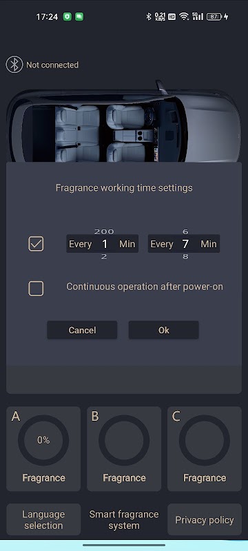 Il diffusore di profumo presente nell'auto, ovvero il profumo viene rilasciato uniformemente nell'abitacolo attraverso il climatizzatore, e l'intensità della fragranza può essere regolata in base alla marcia. Di solito, l'auto originale contiene un profumo adatto. Il proprietario può anche sostituire o aggiungere il profumo in base alle proprie preferenze.