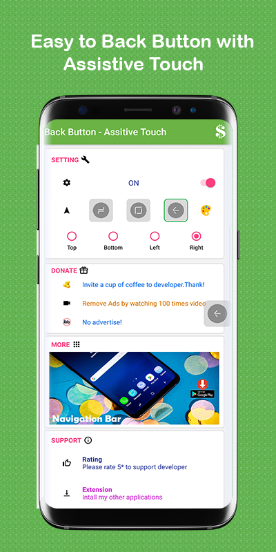 Quando il display del telefono o le dimensioni dello schermo sono molto grandi come la scheda o il tablet, il pulsante di assistenza per il pulsante posteriore è utile per queste persone.