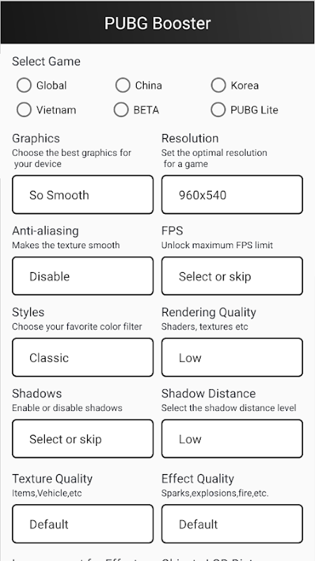 This Game Booster App is developed only for PUBG Mobile, PUBG Lite and Other PUBG games.