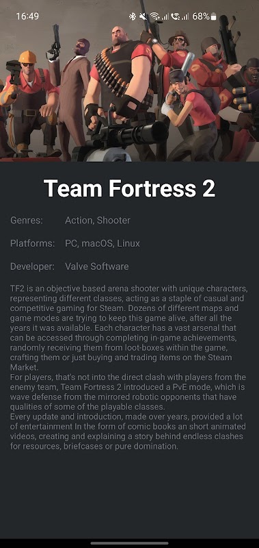 Enorme database di videogiochi. Puoi trovare il tuo titolo preferito e vedere le stesse informazioni.