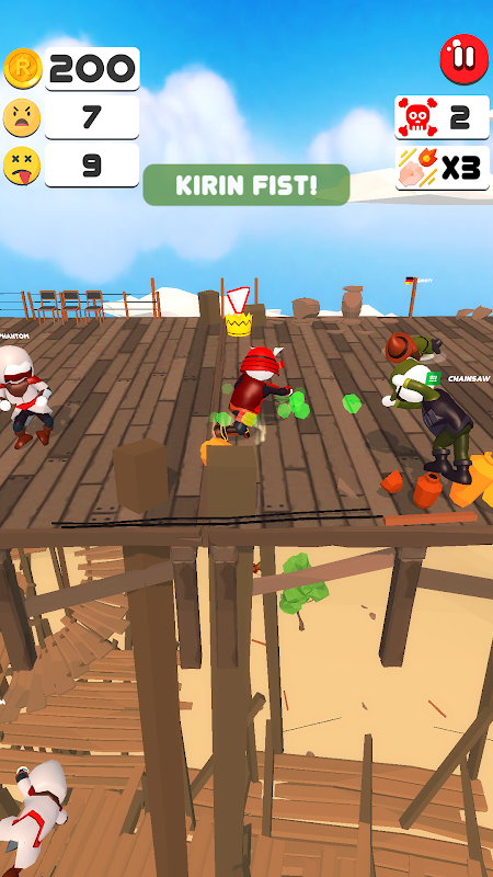 Partecipa a una sala giochi dove puoi trovare più di 15 giocatori. Tutti i giocatori sono in piedi ad un certo punto sulla piattaforma e hanno un solo obiettivo che è quello di abbattere i loro avversari dalla piattaforma su cui si trovano.