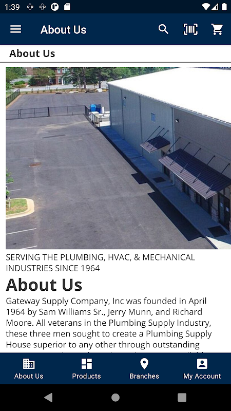Gateway Supply Company, Inc è stata fondata nell'aprile 1964 da Sam Williams Sr., Jerry Munn e Richard Moore. Tutti veterani nel settore delle forniture idrauliche, questi tre uomini hanno cercato di creare un centro di approvvigionamento idraulico superiore a qualsiasi altro attraverso un eccellente servizio clienti e una costante disponibilità di inventario.