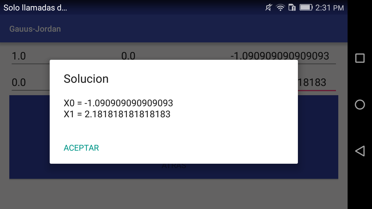 Applicazione Matematica per sistemi di risoluzione di equazioni con il metodo di Gauss Jordan