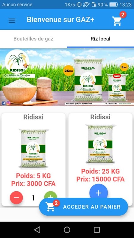 Gaz+ est une application Mobile qui s’occupe spécialement de la livraison des bouteilles de gaz butane à domicile. Elle est dotée d’une géolocalisation. Elle est simple fluide et très facile à utiliser. Le client depuis son domicile clique sur la couleur de sa bouteille de Gaz après inscription, il choisit le poids de sa bouteille ensuite le nombre de bouteille de gaz et enfin nous livrons en moins de trente minutes la bouteille pleine et nous récupérons la bouteille vide du client. Le client peut également commander une bouteille pour quelqu’un depuis le bureau. Nous comptons offrir cette prestation dans toutes les grandes villes de la Côte d’Ivoire et dans les capitales des pays de l’Afrique de l’ouest francophone. Nous travaillons en partenariat avec les distributeurs de gaz des différents quartiers de nos clients. Nous faisons la livraison à 500f. A partir de trois bouteilles pour une seule commande la livraison passe à 1000f. Plus de cinq bouteilles vous payez deux milles francs à la livraison. Lorsqu’une marque de bouteille de gaz manque, cela ne s’affichera pas sur la plateforme. Consommez sans modération et faites nous confiance