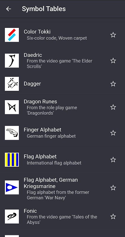 • Più di 200 set di tabelle dei simboli: decodifica diretta dei simboli in caratteri; salva la propria codifica come immagine