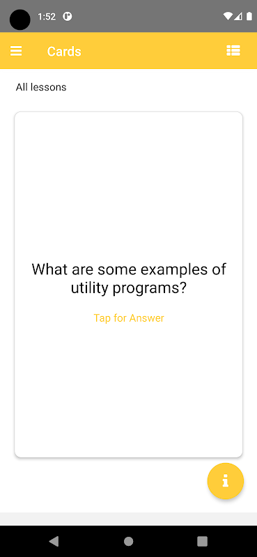 Puoi impostare un promemoria ogni giorno per imparare alcune carte casuali. Se ritieni che una scheda abbia bisogno di maggiori informazioni o diagrammi puoi suggerirli facendo clic sul pulsante "I" e selezionando la pagella.