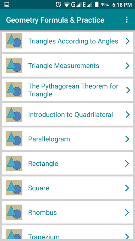 Questa formula di geometria con app di pratica/esempio contiene tutte le formule di geometria di base che hanno esempi di matematica con ciascuna e figure chiare. Puoi imparare le formule e puoi esercitarti negli usi delle formule. Questo ti aiuterà nel tuo rendimento scolastico e in qualsiasi preparazione al lavoro. È utile per gli studenti della classe da 1 a 12. Questa app è molto utile per gli studenti della versione inglese media e inglese. I contenuti principali di questa applicazione sono: