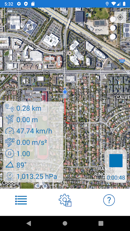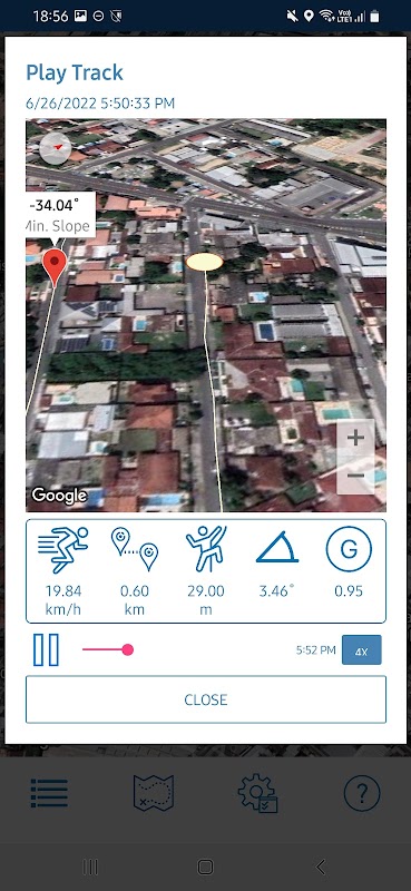 - Registra posizione, velocità, altitudine, accelerazione, forza g (se disponibile), pressione atmosferica (se disponibile) e inclinazione del dispositivo (se disponibile)
