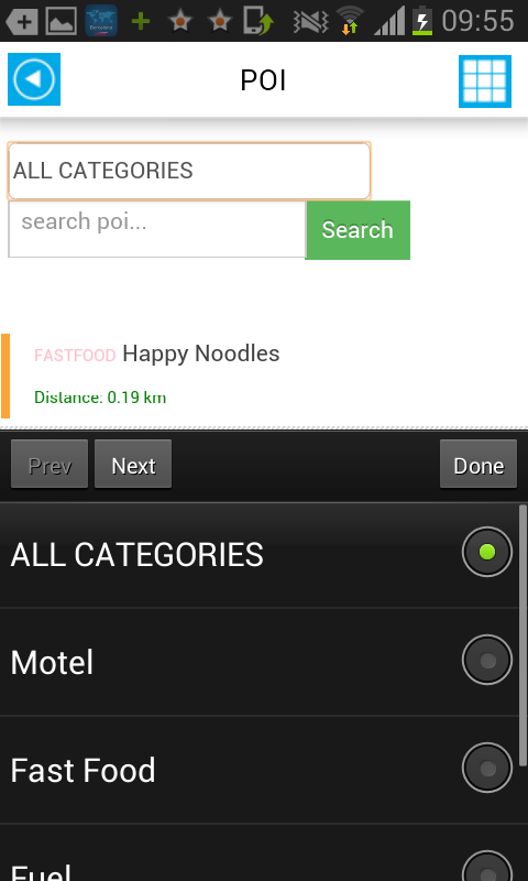 - POI finder (come: alberghi, parcheggi, ristoranti, stazioni di servizio)