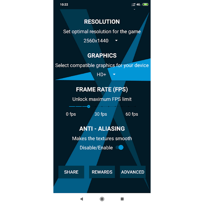 In questo strumento GFX, ci sono diverse opzioni di miglioramento grafico da smooth a HDR.