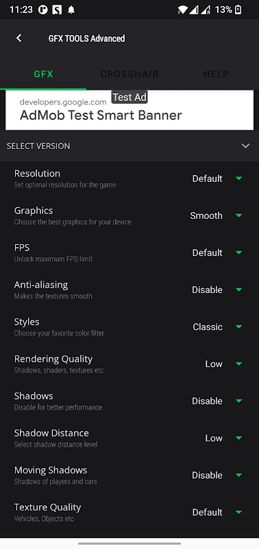 Questo è uno strumento GFX: con l'opzione strumento GFX puoi impostare l'opzione grafica per il gioco. Può aiutare il tuo telefono a migliorare il punto FPS. Lo strumento GFX è utile per Pub Player.