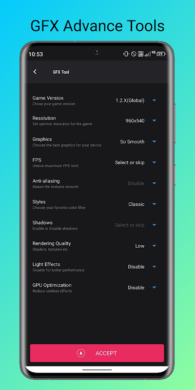 GFX Tool is a free utility launcher for FPS games where you can fully customize the game graphics according to your desires for smooth gameplay experience.