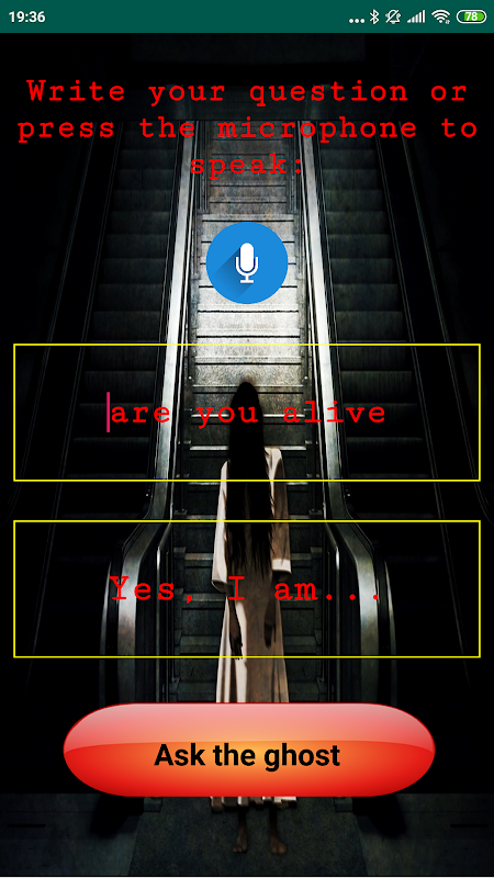 - Press the microphone button to talk to the spirit and he will answer you.