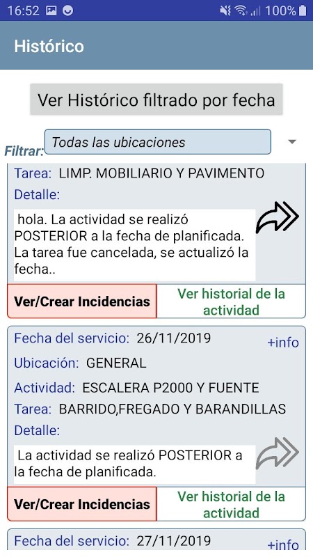 * Planificación e histórico(Filtros y forma)
