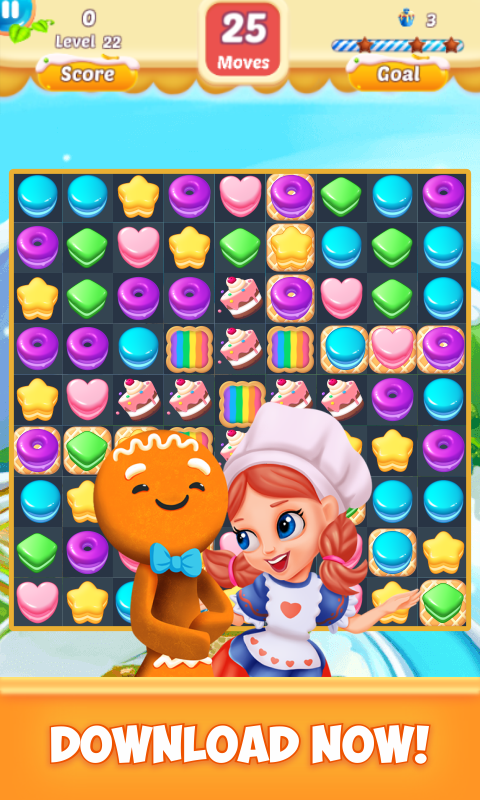 - Thousands of fun levels filled with vivid elements, great puzzles, such as cookie blast world.