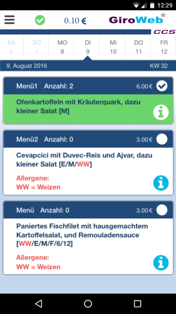 L'App GiroWeb fornisce, analogamente al software del portale sul Web o ai terminali dell'ordine, un modo mobile per gestire i pre-ordini dei menu. Ordina il tuo cibo comodamente con il tuo smartphone o tablet sempre e ovunque.