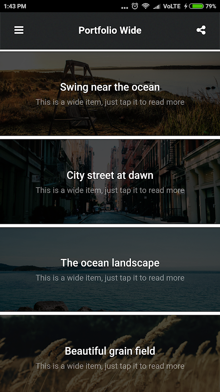 Un elegante modello di Cordova app costruita per strutturare la pagina in sezioni