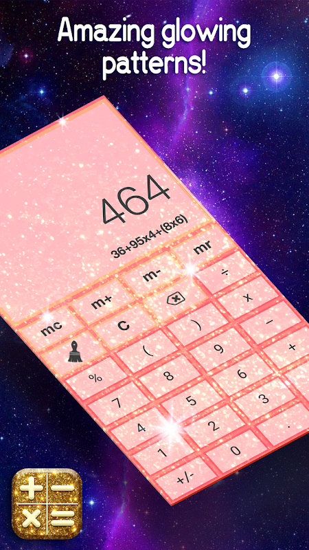 Scarica 🎆Brillare Calcolatrice💝 per tutte le età! Che tu sia un ragazzo o una ragazza, troverai le skin adatte nell'app della calcolatrice! Di tutti i calcolatori carini che ci sono, questa calcolatrice kawaii possiede bellissimi rosa, glitter e molti altri motivi d'oro per il tuo dispositivo! Usa questa bella calcolatrice quando vai a fare shopping o fai i compiti. Mostra la tua calcolatrice nuova di zecca con la percentuale! Aggiungi un po 'di fascino al tuo telefono cellulare grazie al calcolatore di glitter!