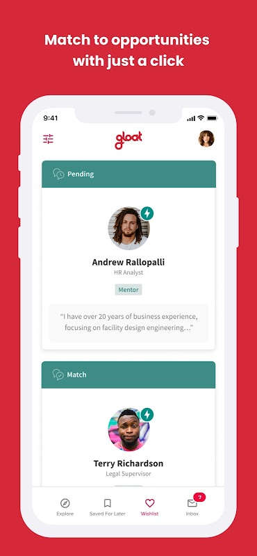 Benvenuto nell'app Gloat Talent Marketplace. Iscriviti per gestire o candidarti per opportunità di carriera all'interno della tua organizzazione. Crea il tuo profilo in pochi secondi e ricevi suggerimenti personalizzati per aiutarti a sviluppare le tue capacità, incontrare nuove persone e assumere la responsabilità della tua carriera. Cerchi talento? Scarica l'app e ottieni immediatamente un elenco delle persone migliori della tua azienda che sono all'altezza del compito.